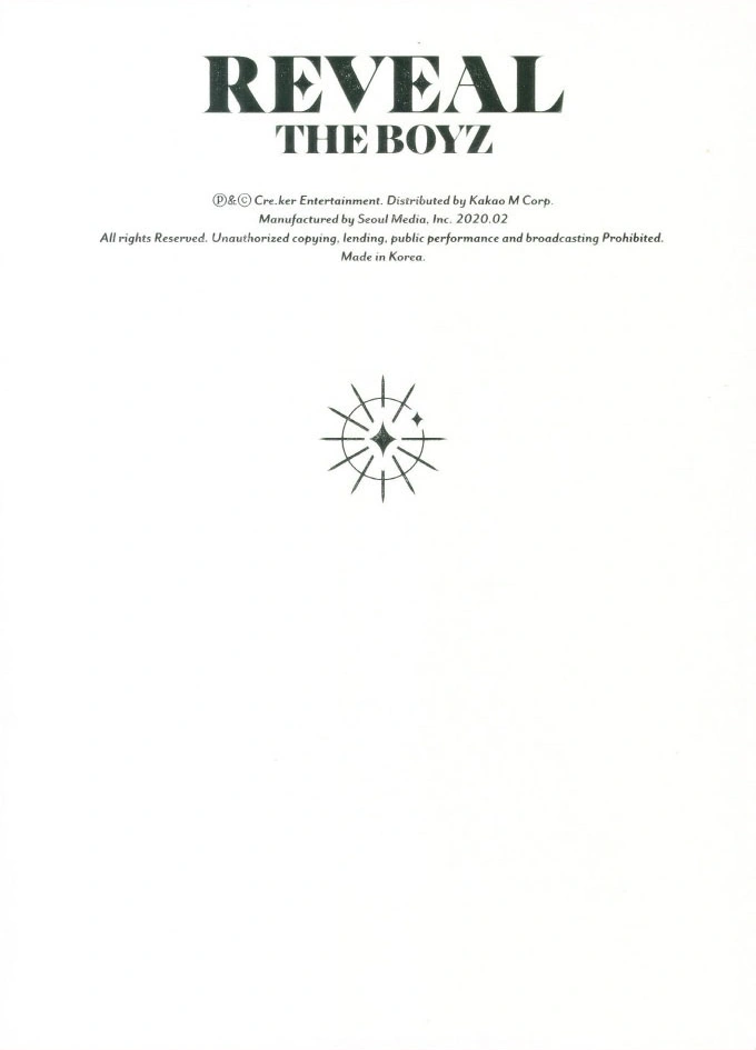 "Reveal", styled as REVEAL, is the first full-length album by South Korean boy group THE BOYZ. The music video for the title track "REVEAL" was pre-released on February 9, 2020 and the album was released on February 10, 2020.